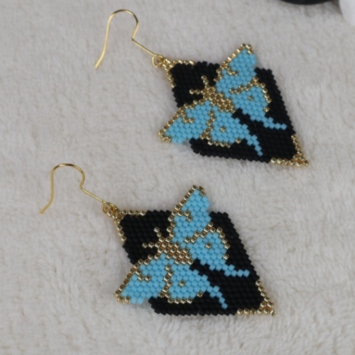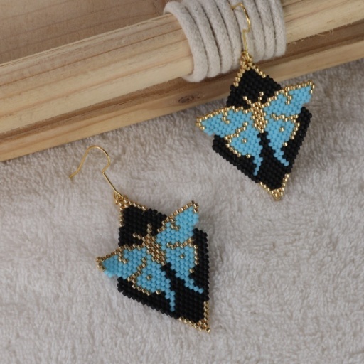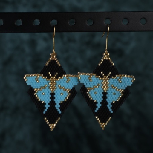 Whimsical and bold, the Sky Butterfly Drop Earring is a wearable work of art. Handwoven with intricate detail, it features a striking sky-blue butterfly set against a deep black diamond-shaped background, framed with soft gold accents. The vibrant wings bring a sense of freedom and transformation, while the bold contrast adds a dramatic flair. Lightweight yet statement-worthy, this earring is perfect for nature lovers, dreamers, and anyone who wants their accessories to tell a story.