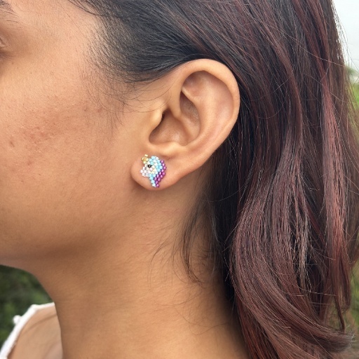 Add a touch of magic to your jewelry collection with the Twilight Unicorn Stud Earring. These playful and dreamy studs are handwoven with delicate seed beads in a whimsical mix of icy blue, lilac, magenta, and shimmering white, forming a charming unicorn-inspired silhouette.